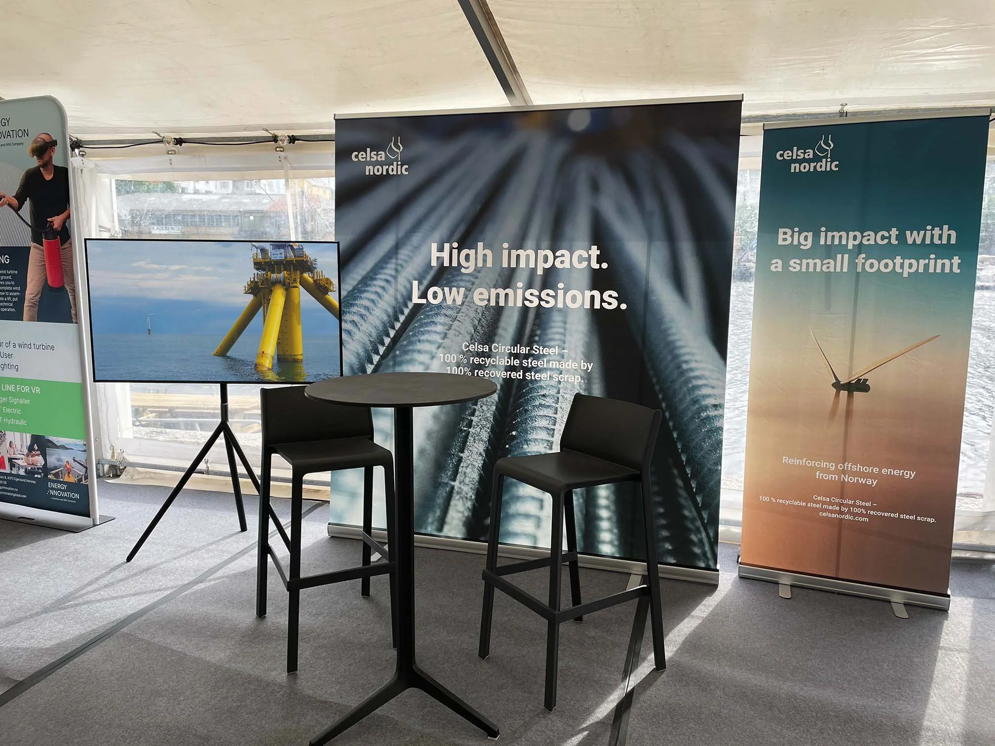 Expoint leverte en komplett messeopplevelse – fra idé og konseptutvikling, via standdesign, til ferdig oppsatt stands. Standløsningene inkluderte i hovedsak lysvegger med print, TV og barstoler med bord. Med vår hands-on tilnærming ivaretok vi alt fra digitale løsninger til kundens praktiske behov. Resultatet ble et gjennomarbeidet og skreddersydd konsept, levert presist og effektivt – akkurat som avtalt; to the point.