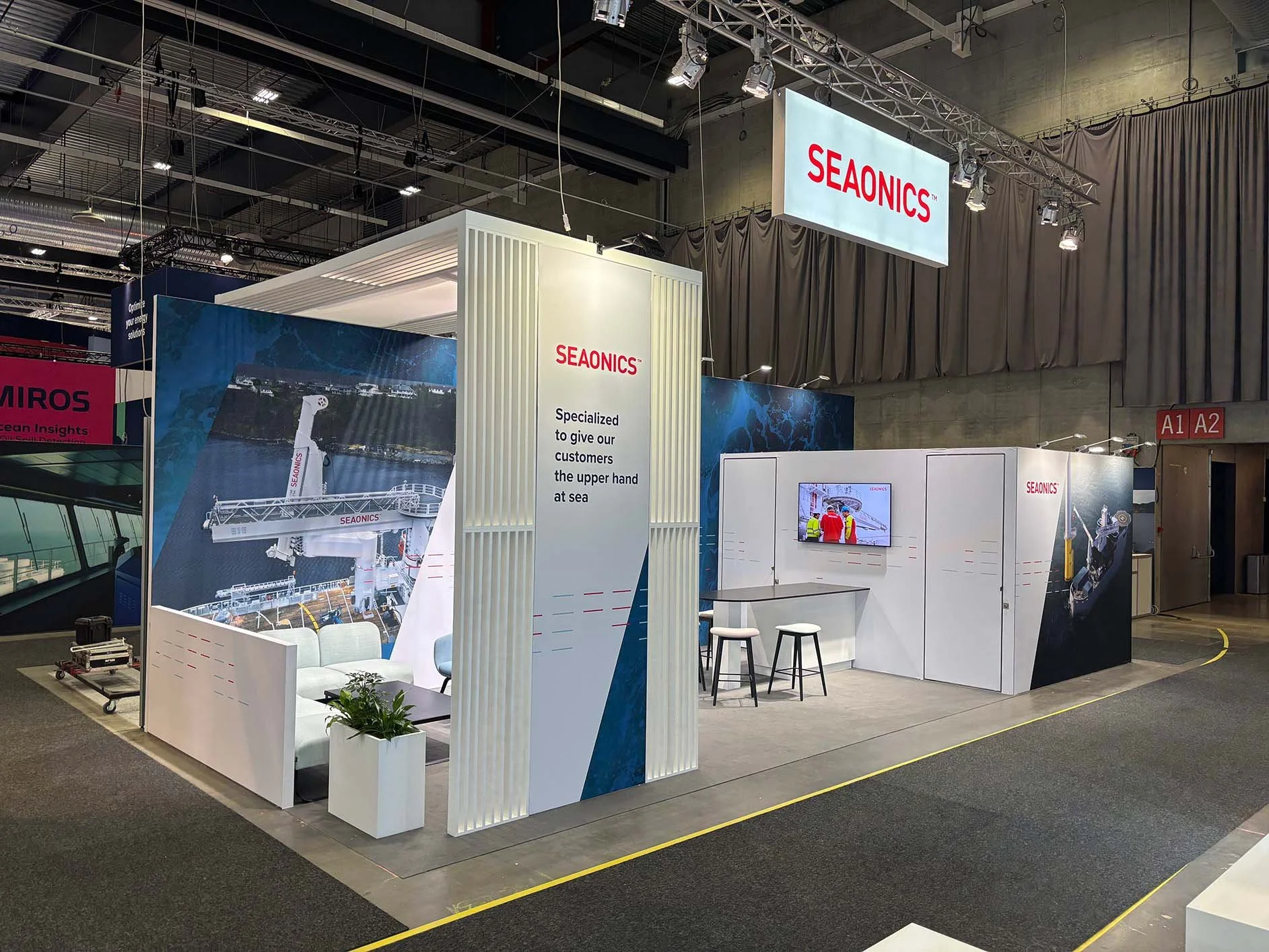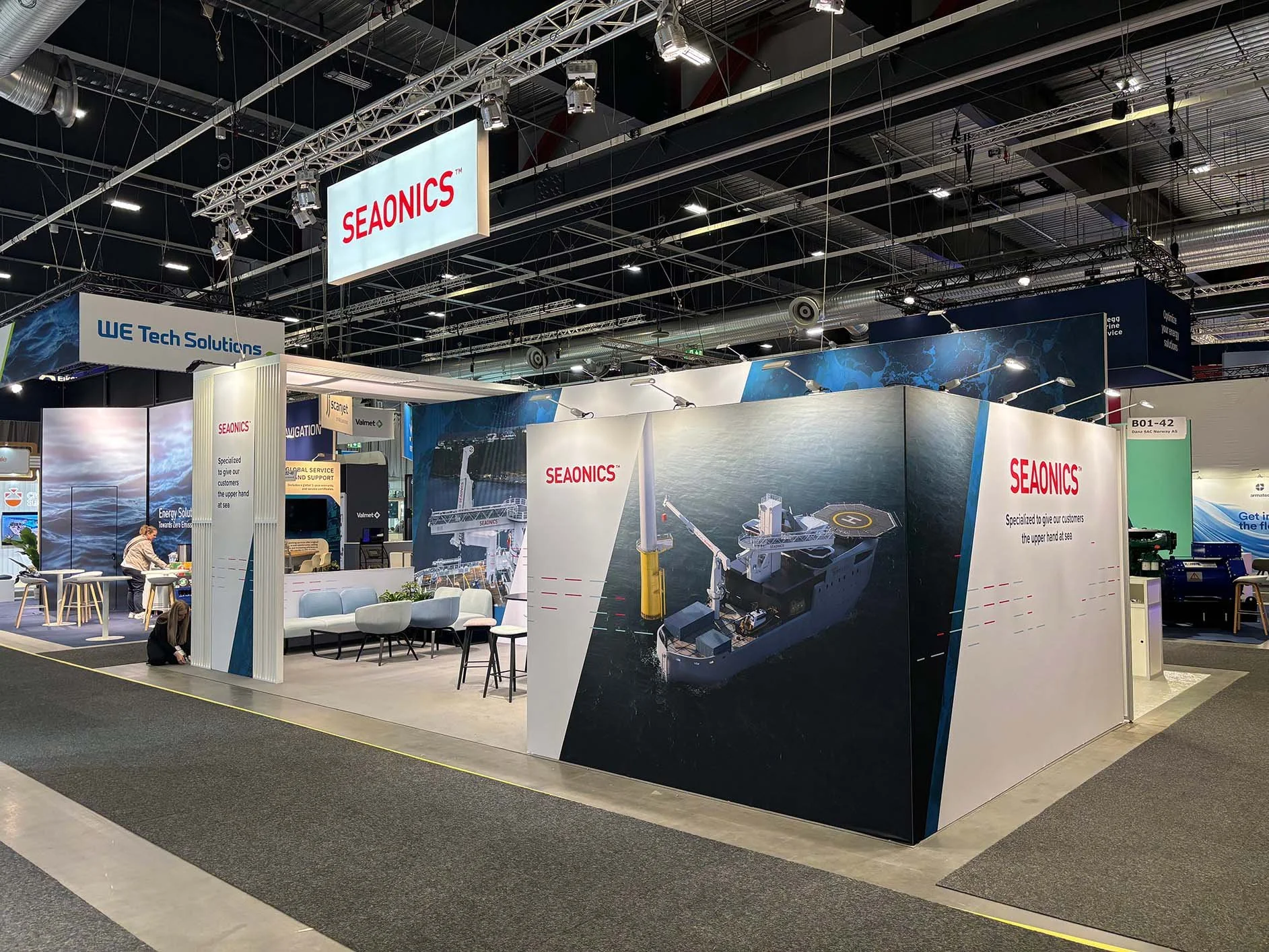 Expoint leverte en komplett messestand – fra idé og konseptutvikling, via standdesign, til ferdig oppsatt messestand. Vi tok ansvar for hele prosessen, inkludert bestillinger, koordinering og praktisk gjennomføring, og sørget for en helhetlig leveranse. Med vår hands-on tilnærming ivaretok vi alt fra digitale løsninger til kundens praktiske behov. Løsningen bestod bl.a. eget presentasjonsområde, loungeområde, serveringsområde, møterom og lagerrom. Resultatet ble et gjennomarbeidet og skreddersydd konsept, levert presist og effektivt – akkurat som avtalt; to the point.